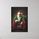 Foto de Donald Trump sentado em uma cadeira de couro marrom vestindo uma fantasia de elfo de Natal