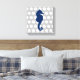 Uma silhueta marinho azul de cavalo marinho contra uma cinza clara e um padrão de bolinhas branca. O padrão striped pode ser colocado em um tamanho diferente. Você também pode personalizar a cor de fundo da cinza de luz. Crie um impressão de canvas personalizado. Tente o código de cor 00255E se quiser corresponder à cor da silhueta ao adicionar sua própria mensagem de texto. Impressões náuticos e arte em muros.