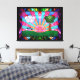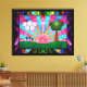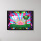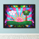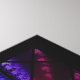 Um design digital de vidro colado no estilo Art Deco popular no século 20. O motif de explosão solar de uso corrente é central, ascensão atrás de uma paisagem verde balanceada por uma árvore de um lado e nuvens e flores do outro. Formas geométricas são usadas para enfatizar a simetria da cena, com a árvore e nuvens feitas de círculos sobrepostos. Vários fractais de cor clara dão textura de "vidro" e interesse. A cena é enquadrada em ferro preto e blocos em forma de diamante fosco com padrões fractais escuros mas vívidos.