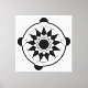 Mandala em preto-e-branco, inspirada em círculo, misturando geometria sagrada, arte cósmica e estilo futurista para roupa e decoração.