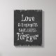 Citação de Amor Imprime Tela. Vintage negro como fundo do quadro com a citação inspiradora do amor, "o amor é um momento que dura para sempre". Bordas das luzes de reserva.