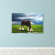 Um bonito garanhão Clydesdale esfola enquanto uma tempestade se espalha.