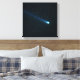 Um cometa brilhante cria uma brilhante bola de felpudo no céu noturno, seguida de uma cauda azul e esperta enquanto se move lentamente entre as estrelas nesta visão estelar avançada.