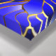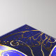Composição de borboletas luxuosas de safira e joias de ouro em fundo azul texturizado.