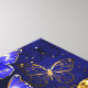 Composição de borboletas luxuosas de safira e joias de ouro em fundo azul texturizado.