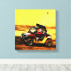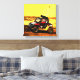 Uma imagem de estilo guache pintada com desenhos animados como detalhes mostrando um ousado motorista de esportes motorizados atravessando uma pista de terra no estilo side-by-side em todo veículo de terreno. É um motor poderoso e pneus empilhados de carne que realmente puxam o volante flexível de quatro rodas através da pista. Matizes quentes de amarelo e marrom para o fundo, e uma máquina e equipamento de equitação de cor vermelha e branca fazem desta obra-prima a escolha perfeita para qualquer quarto ou mancaverna de entusiastas desportivos exteriores extremos.