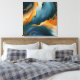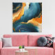 Esta refinada obra de arte abstrata captura o luxo silencioso do movimento fluido, onde os azuis profundos do oceano se encontram com o ouro derretido em uma dança lenta e elegante. Formas suaves e fluidas ondulam pela composição como pedra polida, metal líquido ou correntes submarinas, criando uma sensação de profundidade e harmonia natural. Os acentos dourados parecem estar organicamente incorporados aos tons azuis, adicionando calor, riqueza e um sutil senso de opulência.