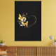 Dourada estrutura em forma de coração, decorada com ouro, joias e borboletas brancas sobre fundo preto.