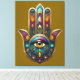 Impressão Em Tela Cores de Pavão Hamsa w/ Terceiro Olho Dourado