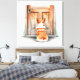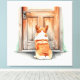 Uma trabalho de arte de aquarela corajosa e carinhosa que retrata um córrego leal sentado pacientemente por uma porta de madeira, esperando alguém voltar. A visão por trás destaca o "bumbum do córrego" e os ouvidos alertas do cão, capturando o sentimento universal de um querido animal de estimação esperando por sua pessoa. O estilo artístico suave dá a esta imagem uma sensação quente e sentimental.