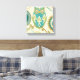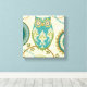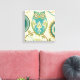 © Verique Charron / Wild Apple. Uma imagem padronizada de uma coruja com padrões circulares. Há também um fundo floral colorido brando na imagem.