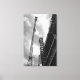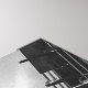 Uma grua de construção e seus contrapesos de várias toneladas com faixas de nuvens atrás delas. Filme preto e branco mostra a geometria dentro das travas do sistema de guindaste e roldana. Para dar à grua uma perspectiva única, seu braço está alinhado com seu fazer base, uma escada até o céu do canteiro de obras. Fotografia a preto e branco de 35 mm. Copyright ©Claire E. Skinner. Todos os direitos reservados.