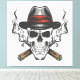 Impressão Em Tela Crânio de gângster com chapéu de fedora