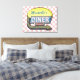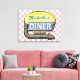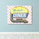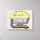 Crie a sua canvas personalizada, estilo diner, estilo 1950, usando este simples modelo. Esta canvas retrógrada legal da cozinha tem um fundo ligeiramente angustiado, rosa-e-branco, com um sinal no topo que diz "DINER" e "ABEN" em neon com espaço para você adicionar seu próprio primeiro ou sobrenome - ou qualquer outra palavra que você queira. O sinal também tem um gráfico de seta aceso. As cores são feitas em tons de rosa, branco, preto, azul, amarelo, cinza e vermelho. Este cartaz vai ficar bem no seu restaurante, cozinha doméstica ou bar temático 50. Basta preencher o modelo de DIY fácil ou "Personalizar" se o seu texto for longo e você precisar redimensionar, reorganizar ou alterar as cores e fontes do texto.