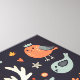 Esta design apresenta um adorável, capricho Ghost vestindo galhadas feitas de folhas e flores do outono. O Fantasma está no centro, rodeado por elementos temáticos do outono, como bolotas, pínus cones, folhas coloridas, maçãs e bagas. Um pássaro giro também aparece, aumentando a atmosfera acolhedora da floresta. A ilustração tem uma paleta de cor suave, muda, de laranjas, castanhos, vermelhos e azuis, evocando a sensação quente e rústica de queda. A palavra "Outono" é escrita em uma escrita divertida na parte inferior, completando o design.