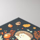 Esta design apresenta um adorável, capricho-branco que veste galhadas feitas de folhas e flores do outono. O porco é o centro, cercado por elementos temáticos do outono, como bolotas, pinheiros, folhas coloridas, maçãs e bagas. Um pássaro giro também aparece, aumentando a atmosfera acolhedora da floresta. A ilustração tem uma paleta de cor suave, muda, de laranjas, castanhos, vermelhos e azuis, evocando a sensação quente e rústica de queda. A palavra "Outono" é escrita em uma escrita divertida na parte inferior, completando o design.