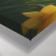A cute hedgehog holding an aquamarine heart sits in a field of yellow daffodils.
