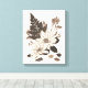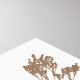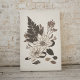 Impressão de arte encantadora e transparente de um arranjo de duas flores margaridas, uma samambaia, e outras folhas secas prensadas, em tons castanhos, sobre um fundo macio e creme. Você pode alterar a posição e o tamanho da composição, alterar o plano de fundo e até adicionar um texto personalizado.