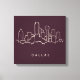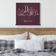 Esta design apresenta um desenho desenhado manualmente do horizonte de Dallas em Burgundy.