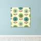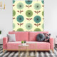 Um padrão moderno de meio século dandelion flutua num fundo amarelo.