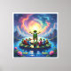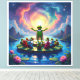 Der Froschkönig steht stolz als Dirigent vor seinem Orchester aus Frosch-Schülern. Mit präzisen Bewegungen und großer Leidenschaft führt er die musikalische Aufführung, die sein ganzes Volk begeistert.
