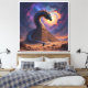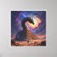 Ein mächtiger Drache windet sich schützend um eine uralte Pyramide inmitten der Wüste. Er ist der Torwächter – ein mystisches Wesen, das das Geheimnis dieser alten Stätte bewahrt. Die untergehende Sonne taucht die Szene in ein magisches Licht, während ein Wanderer dem Drachen gegenübersteht.