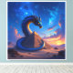 Ein mächtiger Drache windet sich schützend um eine uralte Pyramide inmitten der Wüste. Er ist der Torwächter – ein mystisches Wesen, das das Geheimnis dieser alten Stätte bewahrt. Die untergehende Sonne taucht die Szene in ein magisches Licht, während ein Wanderer dem Drachen gegenübersteht.