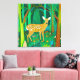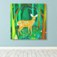 Canvas em ilustração estilizada de um belo, pintado num cenário de conto de fadas, cercado por árvores e plantas, em tons de marrom e verde