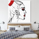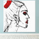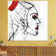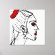 Design de uma mulher no estilo dos esboços de modelos. Preto e branco com realces vermelhos, originalmente desenhados com caneta no papel.