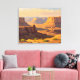 A representation on canvas in the impressionist pictorial style of desert canyons at sunset.