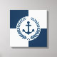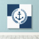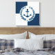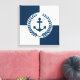 Design com temas náuticos, com decoração da soleira da âncora e da soleira do louro sobre fundo geométrico azul e branco