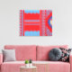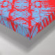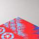 A design apresenta um belo e simétrico design de forma fractal. Ele tem padrões intrincados, semelhantes a rendas com um esquema de cores vermelho, azul e branco. A simetria e a complexidade do design tornam-no visualmente impressionante e interessante, muitas vezes associado à beleza matemática e à expressão artística.