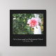 Canvas com a foto de uma rosa rosa de uma estátua e com uma famosa citação de J.W. Goethe, "Eu não me conheço, e Deus me livre de que devo" (Conversações com Eckermann, 10 de abril de 1829). Se você gosta da imagem da rosa e da estátua cor-de-rosa, mas prefere uma citação diferente, você pode personalizar facilmente esta canvas excluindo o texto e escrevendo a sua usando algumas das bonitas fontes que Zazzle fornece. Se você gosta da citação Goethe mas prefere uma foto diferente, note que eu usei este texto com outras fotos também.