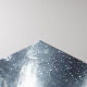 A skier races down a snowy slope in the moonlight leaving a dynamic spray of snow behind