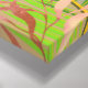 Uma libélula vibrante com asas escuras está rodeada por várias folhagens