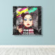 Dama Gothic Harlequin Jester em maquiagem gótica e cabelos no clube com sinal de neon que diz, "Dream Wild."