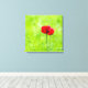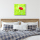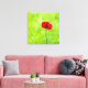 Duas tulipas vermelhas contra o fundo verde e algumas flores silvestres amarelas. Impressão de tela para a parede do escritório ou da casa.