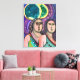 Duas mulheres sob a lua colorida abstrato AI trabalho de arte. Bi casal racial ou melhores amigos. conteúdo generativo