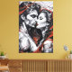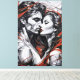 An intense kiss between two faceted, geometric faces—skin fractured into planes of light and shadow—while crimson ribbons flow like blood, passion, or fate. The stark contrast of monochrome and vibrant red creates dramatic tension. A powerful artwork for fashion, film, literature, or emotionally resonant luxury brands.