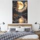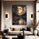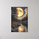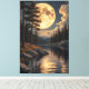 Uma lua cheia gigante e radiante domina o horizonte, lançando sua luz dourada sobre as águas calmas de um lago emoldurado por florestas e montanhas. A cena transmite magia, serenidade e o poder atemporal da natureza em perfeita harmonia.