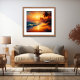 Uma pintura que captura a poesia de um pôr do sol tropical, onde o sol transforma o céu e o mar em um espetáculo dourado. Palmeiras balançam em sombras alaranjadas, e cada onda reflete a promessa de calma, calor e infinitas possibilidades.
