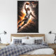 Sinta o momento explosivo onde o poder encontra a elevação. Esta impressão dinâmica em tela captura um jogador de basquete no auge da altura, logo antes da enterrada – onde foco, controle e atletismo bruto colidem no ar.