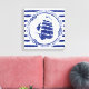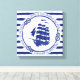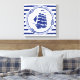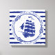 Emblema náutico azul com navio à vela em fundo listrado | © e ® Bigstock® - Todos os direitos reservados.