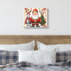 Um design festivo com um boneco de neve, Papais noeis, veado e uma árvore de Natal decorada, colocado contra um ouro, pintado fundo floral, evocando calor e mágica de férias. "A Imagem Original foi gerada pelo Meta AI. A IA gerou trabalho de arte. Licenciado sob CC BY-SA 4.0."