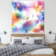 Ilustração em aquarela Encontro-te na Ponte da Arco-íris. Uma cena caprichosa e sonhadora que retrata uma Ponte da Arco-íris colorida e etérea que se estende por uma paisagem fantástica repleta de nuvens suaves e giratórias em tons vibrantes de azul, rosa e amarelo. A atmosfera é serena e mágica, evocando um sentimento de admiração e tranquilidade, rodeada por estrelas cintilantes e trilhas de luz que realçam o encanto da cena.
