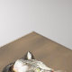 Uma cinza enfumaçado tocada por gato na borda de uma cadeira contra um fundo neutro. Personalize adicionando seu próprio texto. Você pode alterar a fonte e a cor do texto.