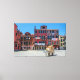 Pintura da praça de Veneza. Carrinho com caixas no meio da antiga praça italiana com edifícios coloridos em Veneza, Itália. Correio, serviço de entrega em Itália. Caixas deixadas sozinhas.
