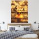 Dramatic surreal seascape oil painting featuring a tiny yellow rubber duck facing a sea full of shark fins and crashing waves under stormy golden clouds. Perfect humorous statement piece for ocean lovers, surfers, and anyone who enjoys dark comedy wall art and bold conversation starters.