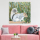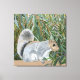 Esta canvas mostra meu retrato de um esquilo fofo sentado em uma cerca em frente a uma árvore selvagem. Eu vi esse Esquilo enquanto caminhava ao longo da margem do rio e o fotografei para que eu pudesse pintá-lo mais tarde.