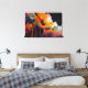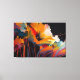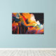This evocative abstract artwork captures the soul of a garden through dramatic color, motion, and expressive texture. Luminous floral forms emerge from a deep, shadowed background, painted in rich hues of golden orange, warm ivory, crimson, teal, and soft violet. Fluid brushstrokes and dripping lines give the composition a sense of growth and release, as if the flowers are unfolding in a moment of intense emotional energy.